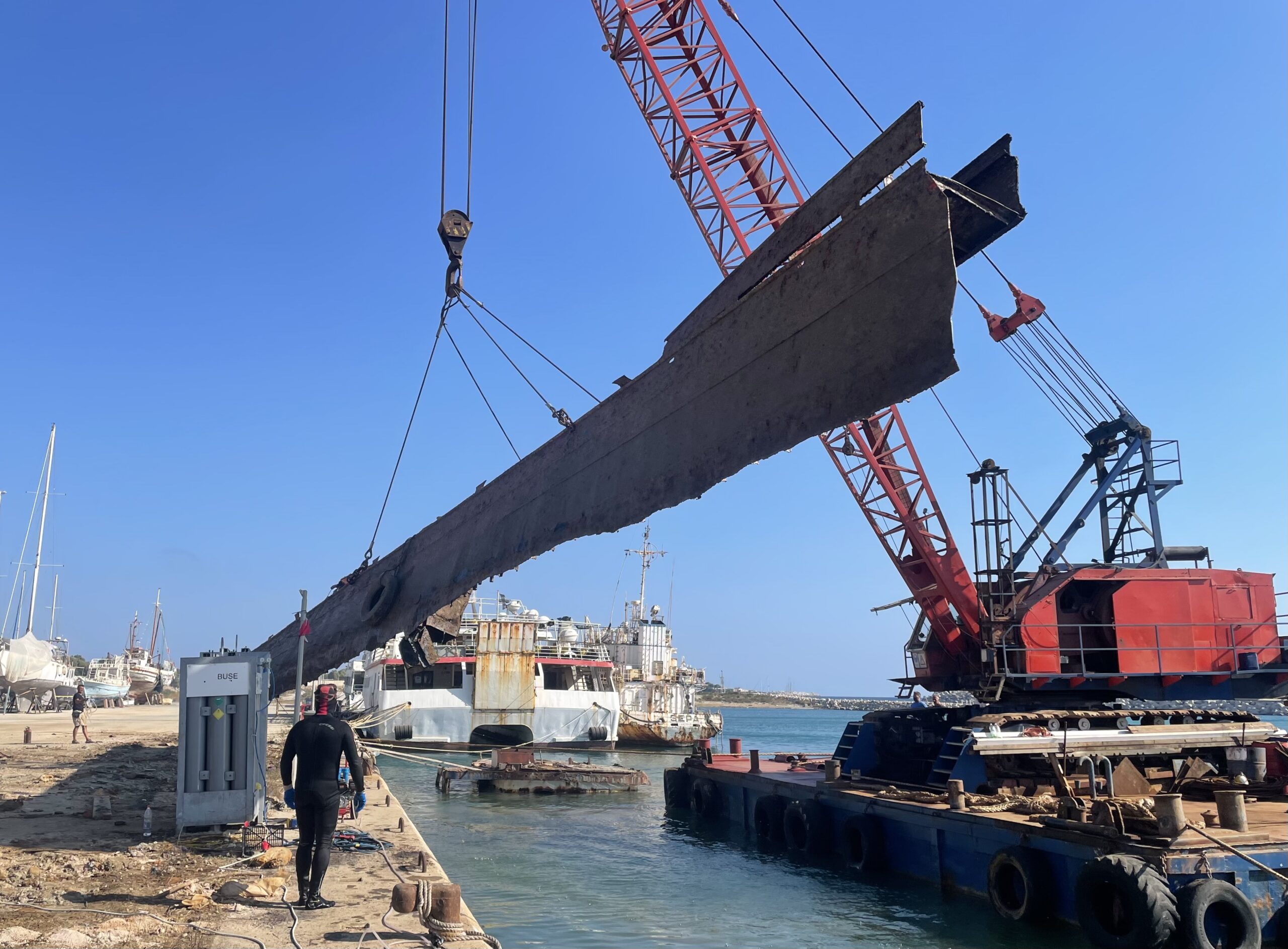Υποβρύχια κόπη 4 πλοίων και ενός πλωτού γερανού και ανέλκυση στο καρνάγιο Ρόδου